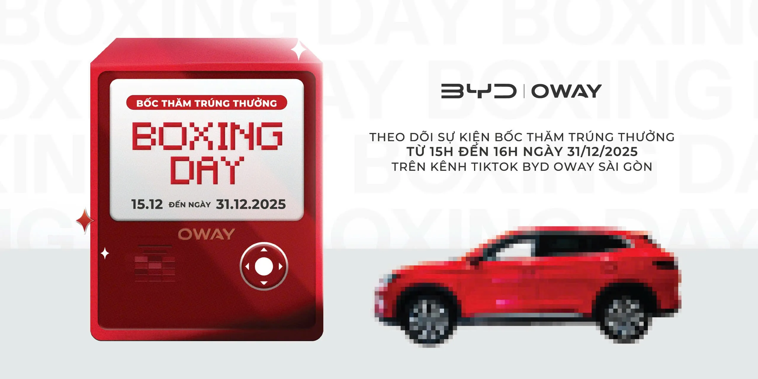 Tham gia sự kiện Boxing Day, cơ hội bốc thăm trúng thưởng hàng chục quà tặng giá trị từ BYD OWAY Sài Gòn.