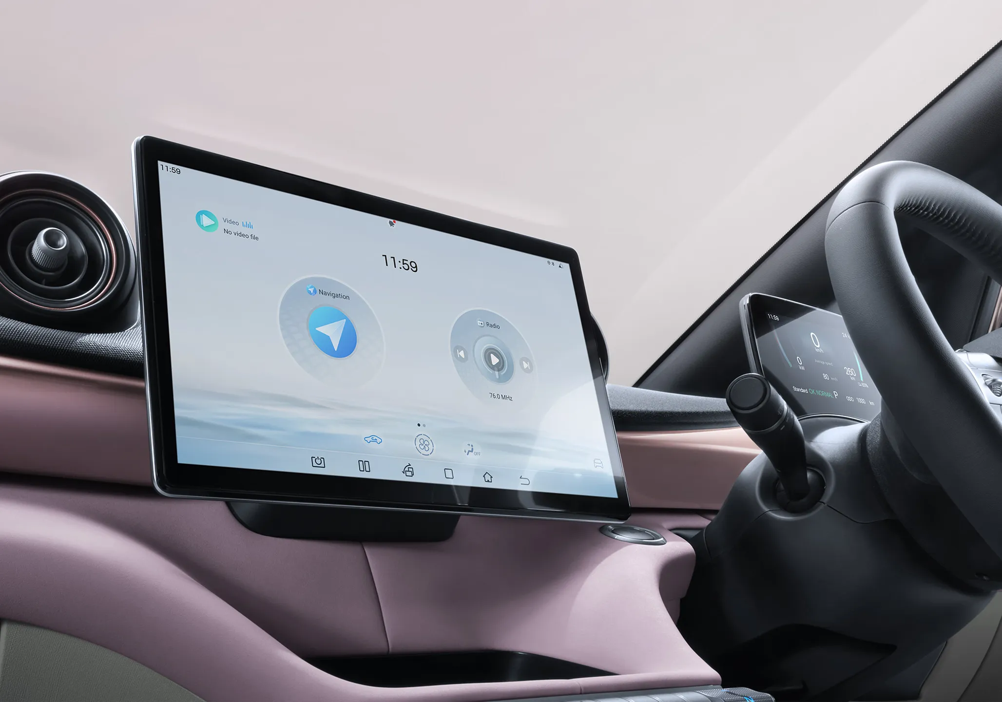 Trung tâm điều khiển công nghệ của xe là màn hình cảm ứng xoay thông minh 12,8 inch độc đáo. Kết hợp cùng vô lăng ba chấu thể thao và cụm đồng hồ kỹ thuật số nhỏ gọn, màn hình này mang lại trải nghiệm tương tác trực quan, tiện lợi và đầy phong cách.