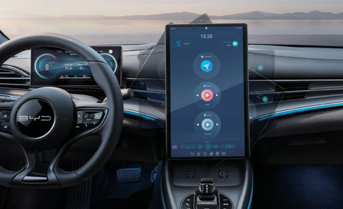 Không gian cabin là một ốc đảo công nghệ. Tâm điểm là màn hình cảm ứng xoay 15.6 inch độc đáo, kết hợp cùng hệ thống âm thanh vòm 12 loa DYNAUDIO thượng hạng. Trần kính toàn cảnh mạ bạc mang đến tầm nhìn và trải nghiệm không gian vượt trội.